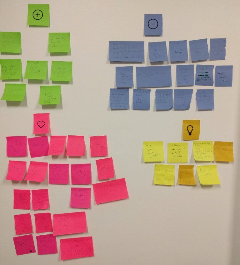 For larger teams, this kind of exercise may take too much time. A solution can be to limit the number of post-its per person to make sure everyone stays concise and focused about what he has to say.