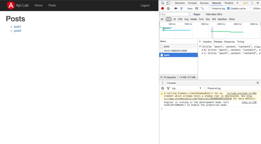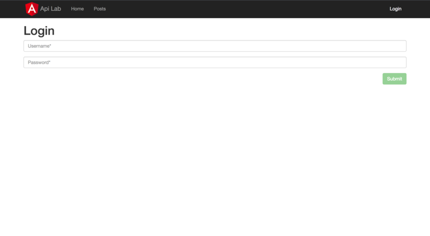 <!-- app.component.html --> <nav class="navbar navbar-inverse navbar-fixed-top"> <div class="container"> <div class="navbar-header"> <button type="button" class="navbar-toggle collapsed" data-toggle="collapse" data-target="#navbar" aria-expanded="false" aria-controls="navbar"> <span class="sr-only">Toggle navigation</span> <span class="icon-bar"></span> <span class="icon-bar"></span> <span class="icon-bar"></span> </button> <img class="pull-left logo" src="../assets/images/ng-xs.png" alt="Angular2"> <a class="navbar-brand" [routerLink]="['']">Api Lab</a> </div> <div id="navbar" class="collapse navbar-collapse"> <ul class="nav navbar-nav"> <li><a [routerLink]="['']">Home</a></li> <li><a [routerLink]="['post']">Posts</a></li> </ul> <ul class="nav navbar-nav pull-right"> <li *ngIf="!hasAuthToken()"><a [routerLink]="['login']">Login</a></li> <li *ngIf="hasAuthToken()"><a (click)="logout()" href="#">Logout</a></li> </ul> </div> </div> </nav> <router-outlet></router-outlet>