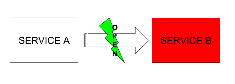 Ce qui permet au service A de prendre en charge la panne, et d'attendre que le service B soit relancé. Dans ce cas là le circuit-breaker se ferme et la communication recommence.
