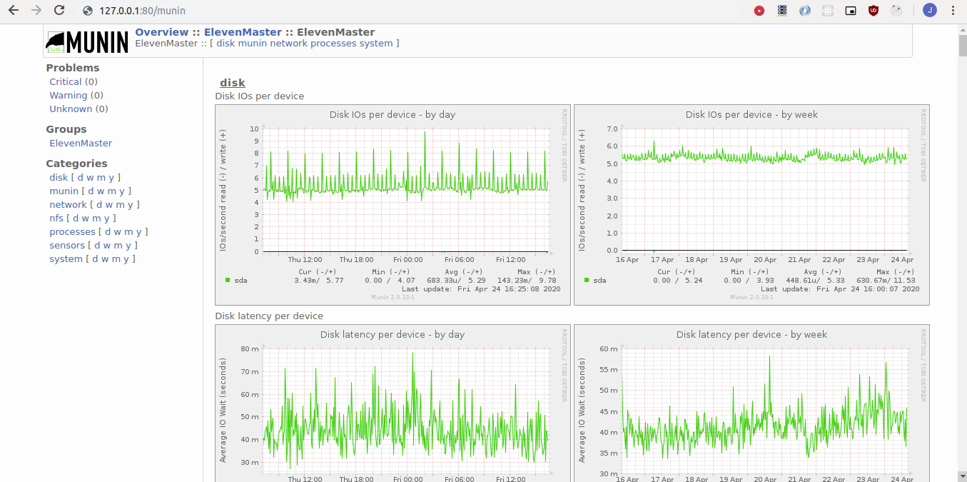Votre instance de Munin est maintenant en place. Vous pouvez à tout moment configurer des outils de monitoring spécifiques (apache, mysql, nginx, etc) grace aux plugins issus de la communauté, il y a beaucoup de choses très utiles.