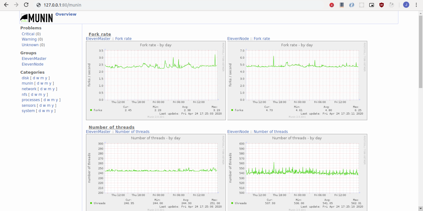 Au bout de quelques minutes, le temps que Munin récupère les informations du Node fraîchement ajouté, vous devriez voir apparaître votre seconde machine dans l’interface web :