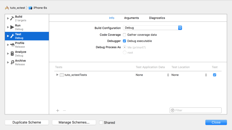 La solution : le code coverage. Il permet d’écrire le taux de code source testé d'un programme. Comment faire sous Xcode ? Cliquez sur l’icone (cf. screenshot ci-dessous) et cliquez sur “Edit Schema”
